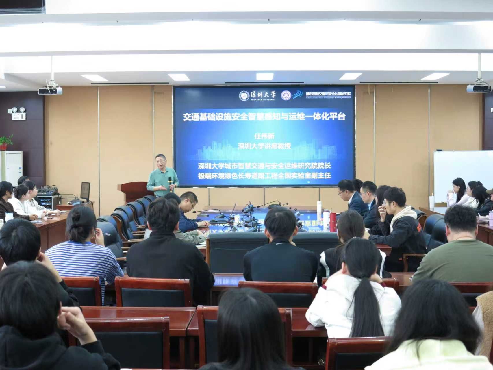 为落实土木工程学院(建筑学院)“学术创新年”工作规划,助力师生群体精准把握智慧交通技术内核,提升科研创新能力、赋能科研创新实践,2025年10月15日下午,学院邀请深圳大学教授任伟新在32208报告厅作了题为“交通基础设施安全智慧感知与运维一体化平台”的学术报告。报告会由学院院长丁永刚主持,学院师生100余人参加了本次报告会。