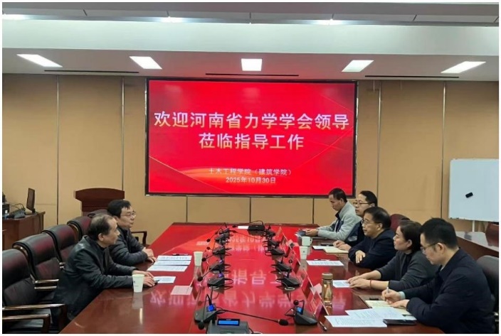 2025 年 10 月 30 日下午,河南省力学学会理事长、华北水利水电大学副校长赵军,河南省力学学会副秘书长李乐、李静一行三人莅临我校,就我校承办第二届河南省大学生结构力学竞赛的组织筹备工作进行实地考察与指导。教务处处长杨六栓、土木工程学院(建筑学院)相关领导及筹备组教师参加会议,院长丁永刚主持会议。