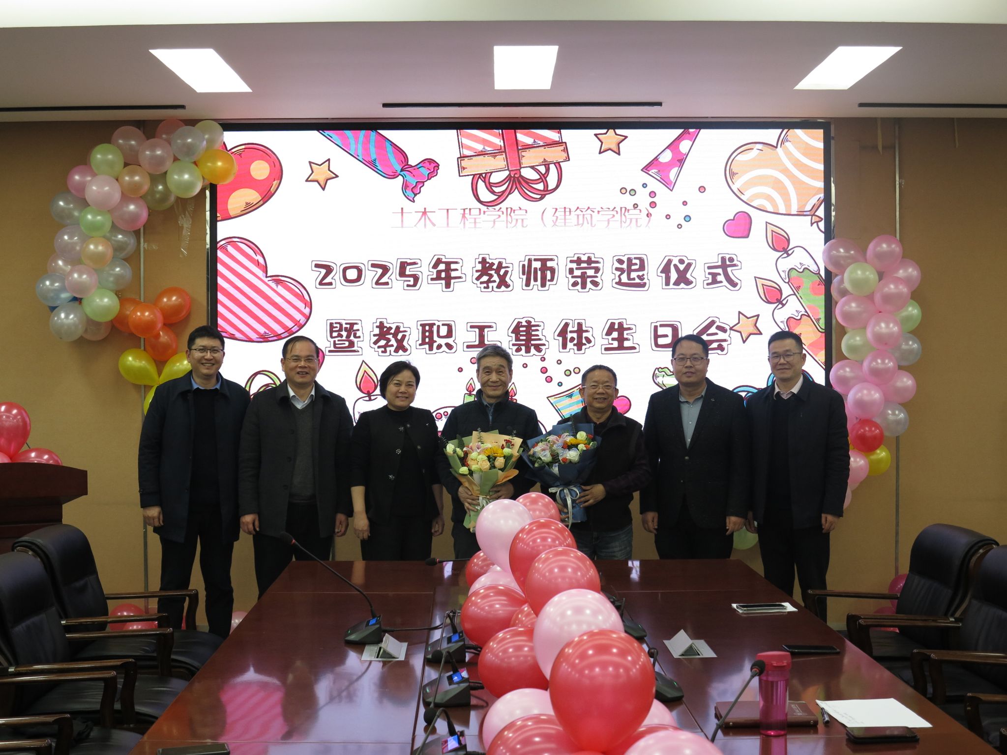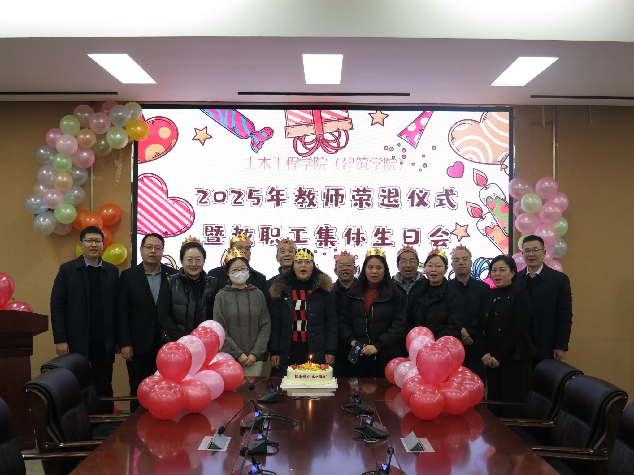 1230日下午土木工程学院建筑学院32208会议室隆重举行退休教师荣退仪式暨教职工集体生日会。学院领导班子成员、今年荣休教师、适逢整数生日教职工以及教师代表欢聚一堂,共话耕耘岁月,同庆温情生辰。