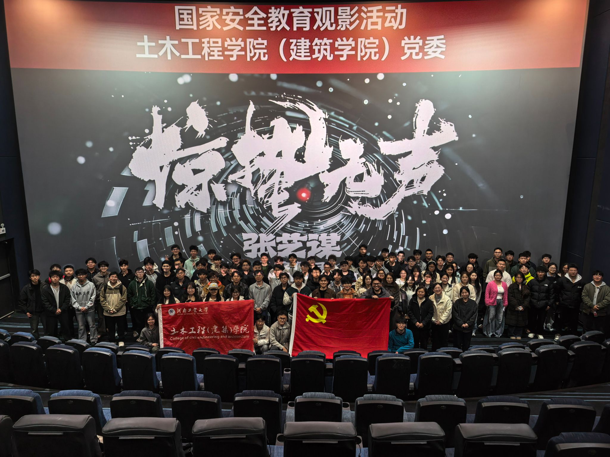 为深入贯彻总体国家安全观,增强全体学生的国家安全意识,引导青年学生坚定理想信念、自觉履行国家安全使命,3月11日,土木工程学院(建筑学院)组织全体学生党员、学生干部开展集体观影活动,共同观看国家安全题材影片《惊蛰无声》,以沉浸式学习形式开展国家安全主题教育,推动思想政治教育走深走实。